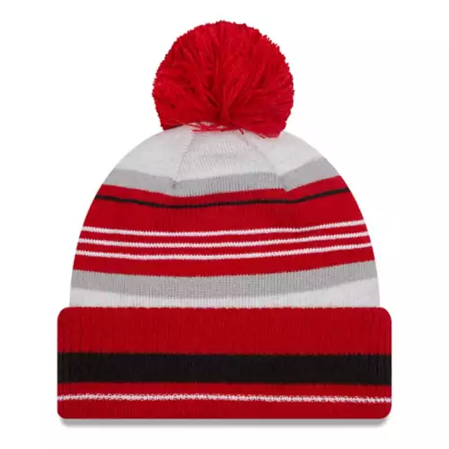 New Era Nebraska Cornhuskers Grayed Stripe Pom Beanie